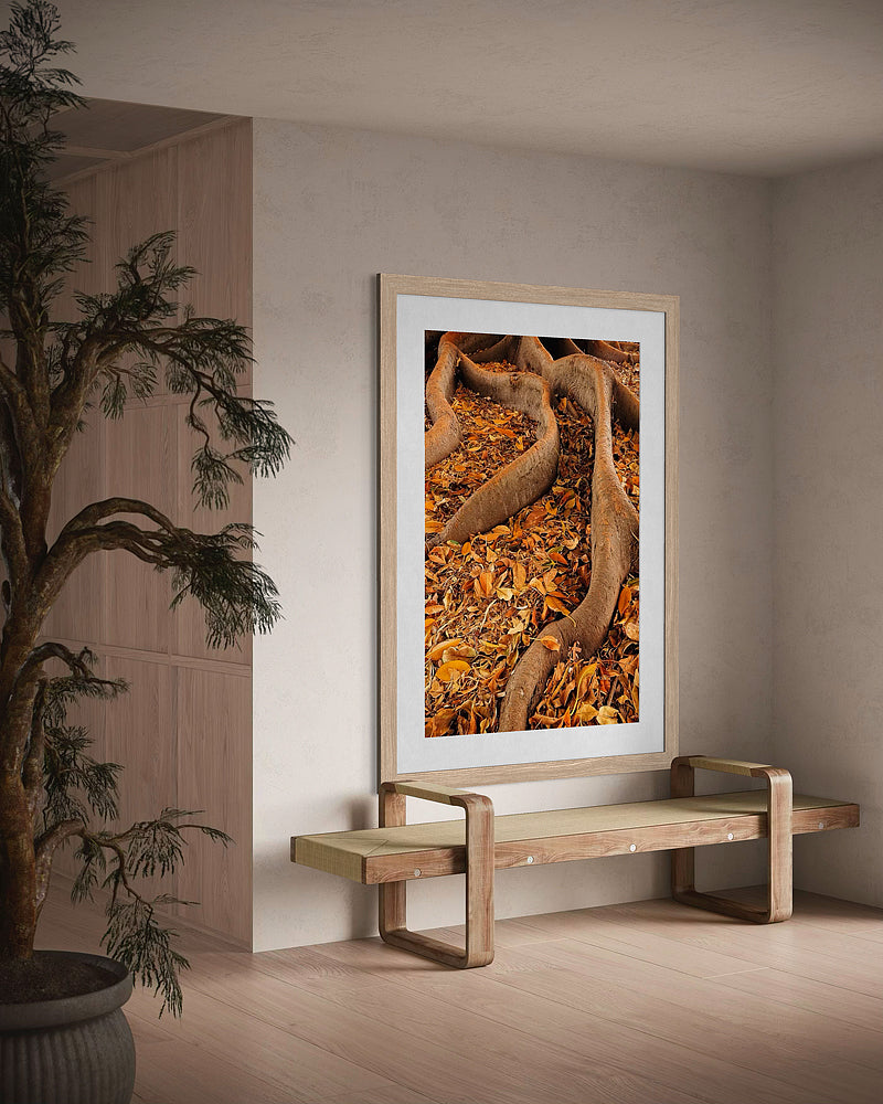 The large root system of the massive fig trees that grow around Perth. In autumn when they drop a few leaves and the light is warmer the colours and texture of these massive tree roots is so full of character and interest.