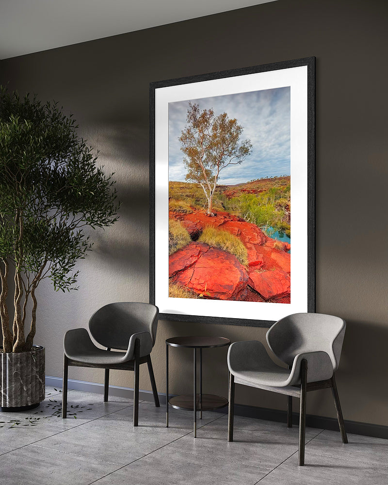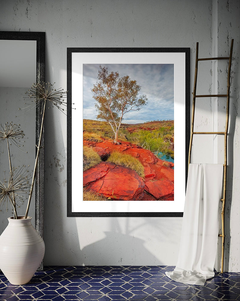 After hiking up to the rim of the gorge there was not a clear view into the gorge as I had hope but what there was was this lone tree right on the edge of the gorge almost as if it was looking into karijini national park gorge.
